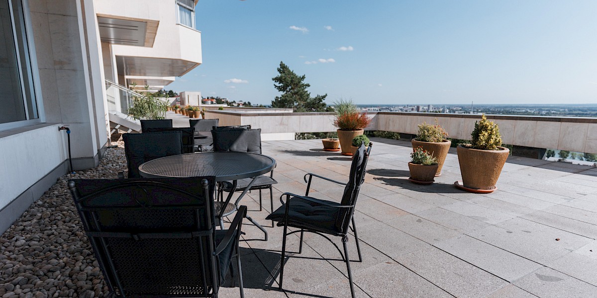 V hotelovom bloku je 12 dvojposteľových izieb a 4 apartmány s krásnym výhľadom na Dunaj.