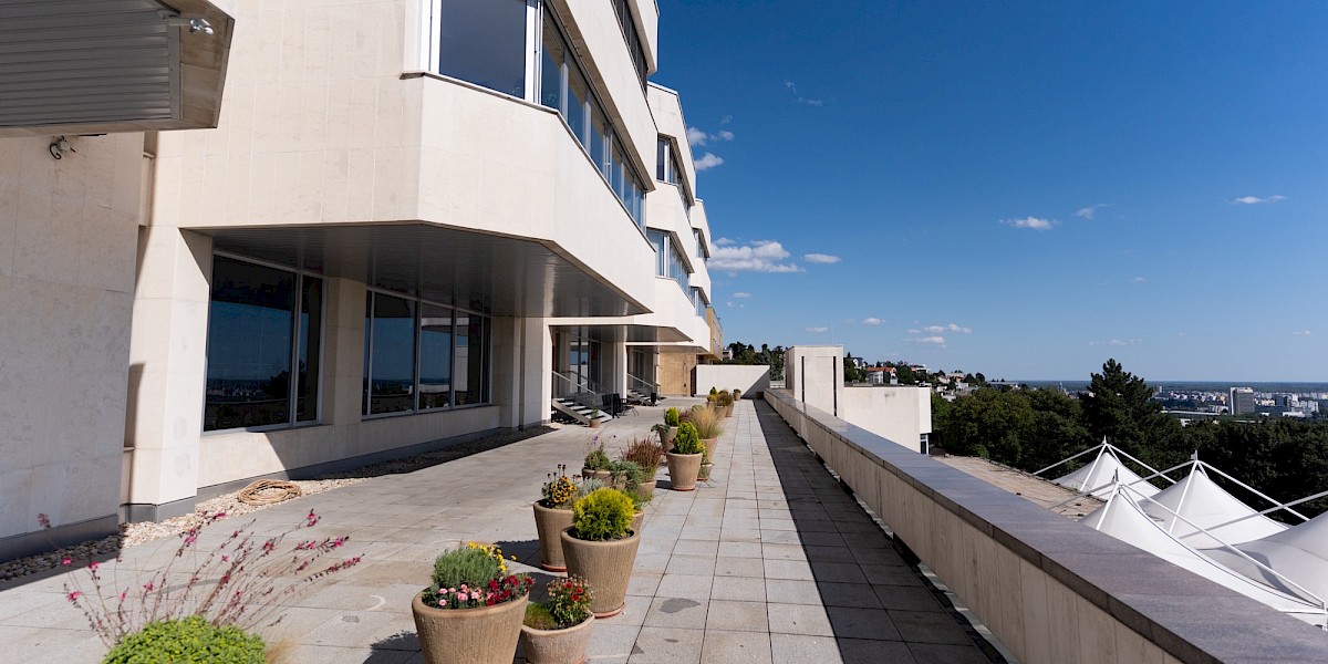 V hotelovom bloku je 12 dvojposteľových izieb a 4 apartmány s krásnym výhľadom na Dunaj.